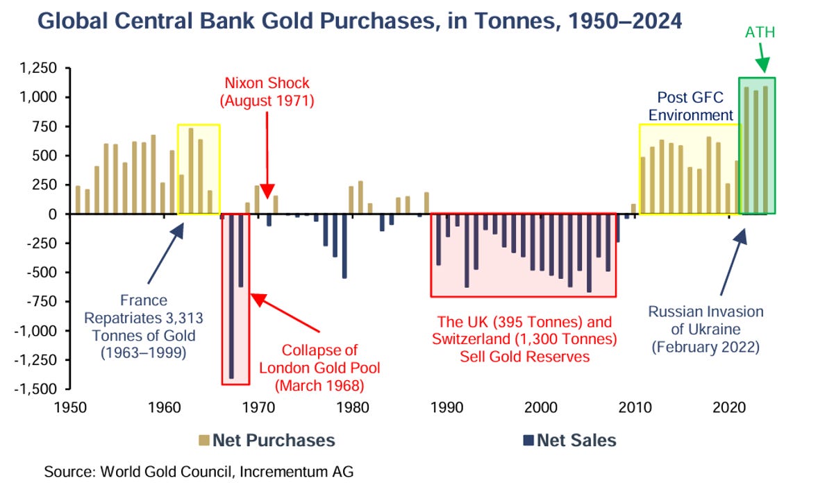As part of this, Poland’s Central Bank just announced it’s planning to increase gold’s share of its total reserves from the current 20% to 30%. That comes after being the No.1 central bank gold buyer in 2024 (89.5 tonnes).